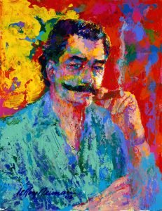Widely known for his vividly colored, energetic, and flashy imagery of sporting events and “the good life,” Neiman was once as recognizable to audiences as the athletes and personalities he depicted. He could be spotted in box seats at major championship matches, rubbing elbows with the VIPs and dignitaries, palling around with the likes of Ali, Sinatra, Salvador Dali, Andy Warhol, with whom he had a two-man show in 1981, and even Sylvester Stallone. Neiman has credits in Rocky II, III, IV, and V, where he either appeared in a cameo role or his art was used as a set decoration. Neiman mingled and hobnobbed with so many famous people, too numerous to mention here, but it’s a safe bet those celebs shared a similar comfort level with him.