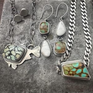 One highlight this year is Kelly Nichols of Mend Metalworks and her hand-fabricated jewelry, which carries the quiet magic of something made slowly and intentionally. Working with sterling silver and natural stones, Nichols creates talismanic rings, necklaces, and cuffs rooted in movement, transformation, and the beauty of what is mended. Her work reflects both the landscapes she loves and the internal journeys we all navigate, with each piece serving as a small reminder of resilience and wonder.
